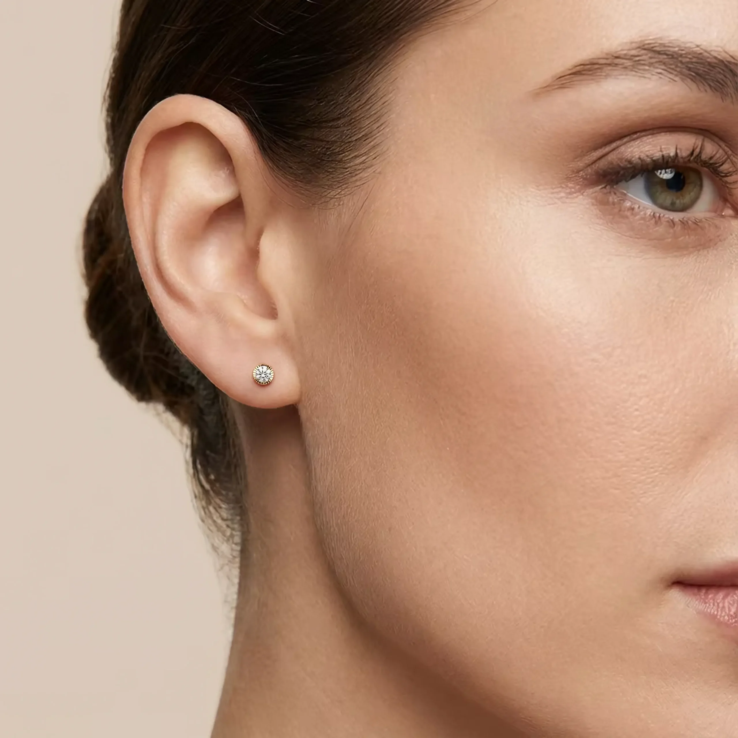 Broquel oro amarillo 10k, modelo Biselado diamantado con zirconia redonda de 4mm.