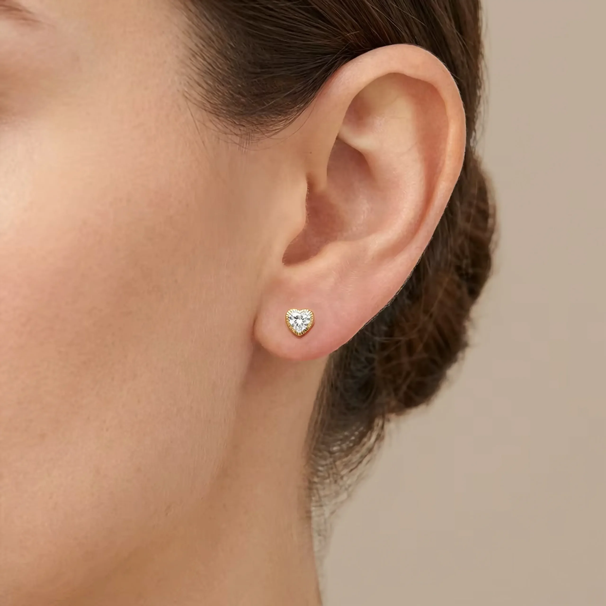Broquel oro amarillo 10k, modelo Biselado diamantado corazón con zirconia 5*5mm.