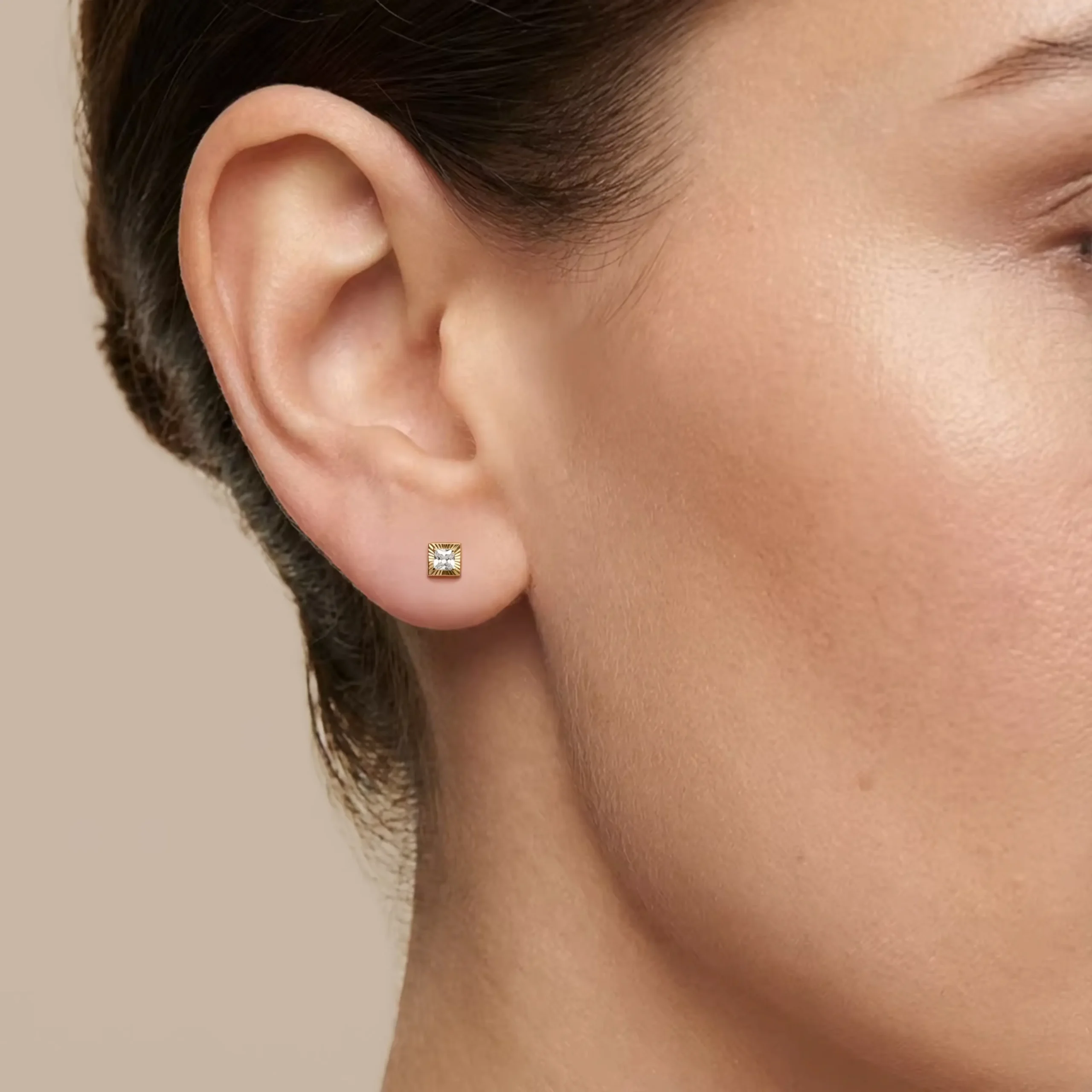 Broquel oro amarillo 10k, modelo Biselado diamantado cuadro con zirconia 4mm.