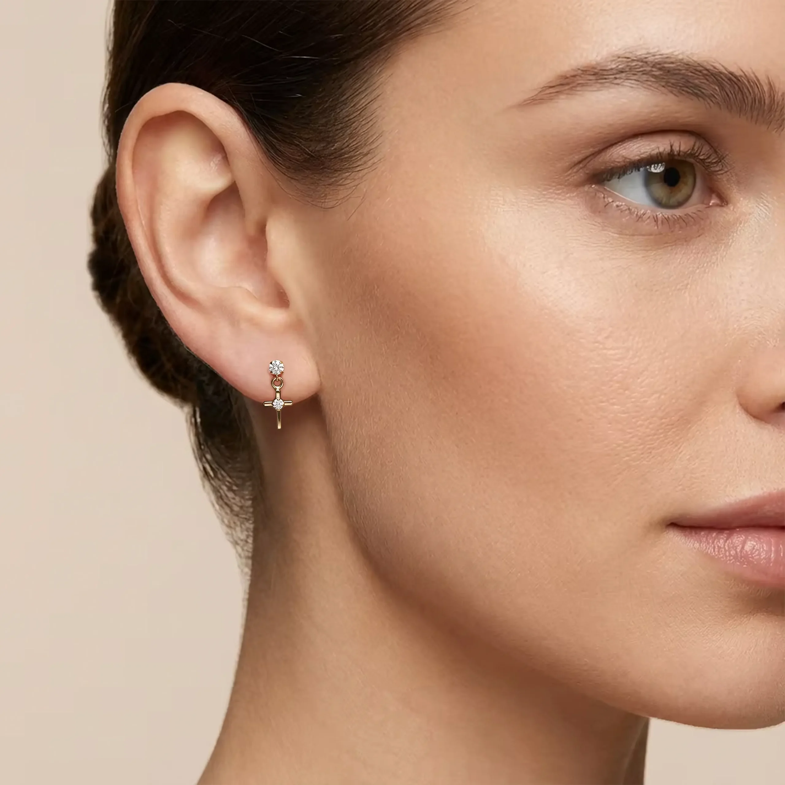 Broquel oro amarillo 10k, modelo Colgante cruz C/1.75