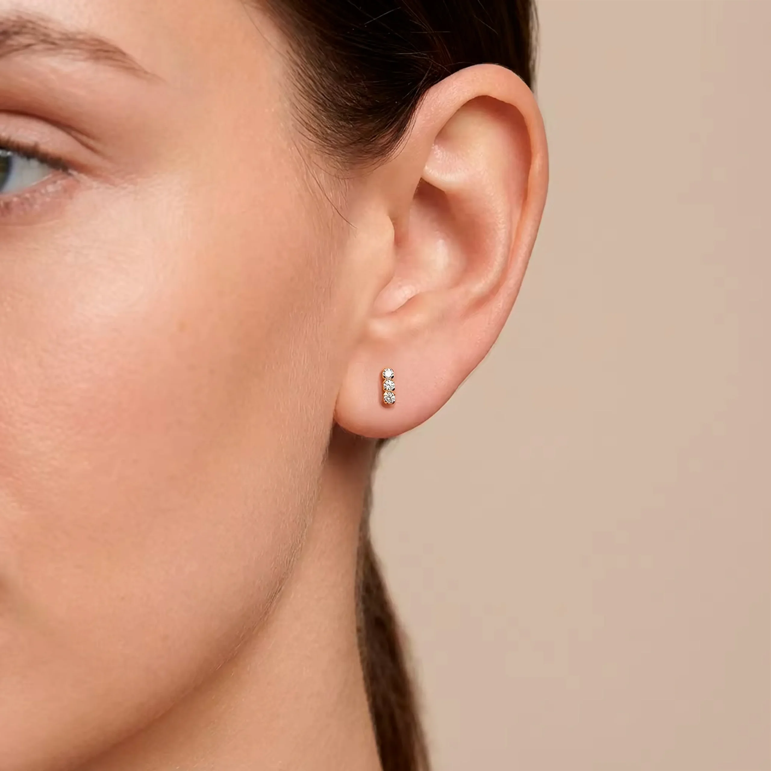 Broquel oro amarillo 10k, modelo Barra conformada por 3 zirconias de 1.75mm.